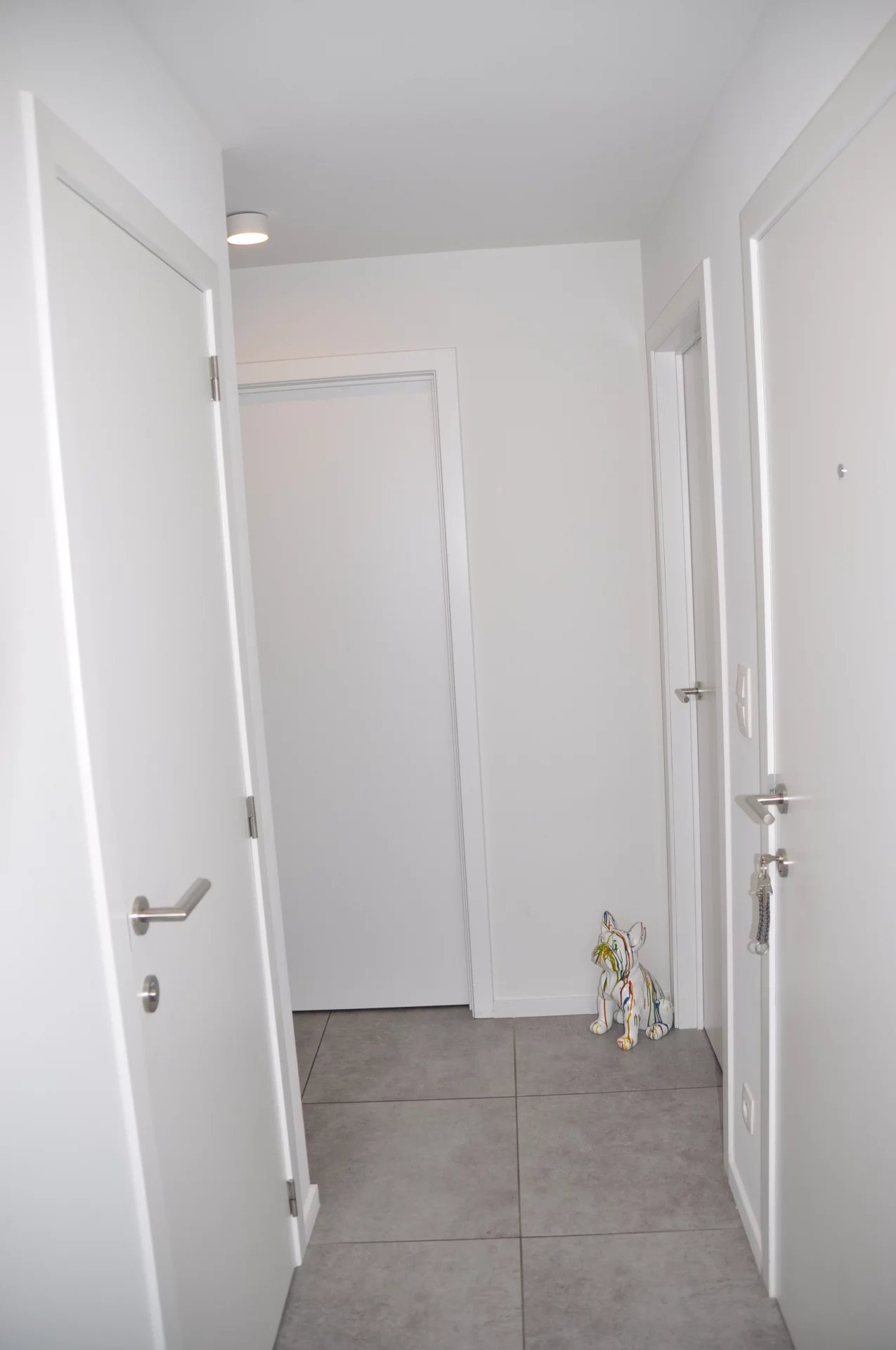 Het appartement maakt deel uit van een kleinschalige residentie bestaande uit amper drie appartementen (één per verdieping). Hierdoor geniet u weinig buren en extra privacy. Er is geen lift voorzien in het gebouw doch een ruime trap naar de verschillende verdiepingen.